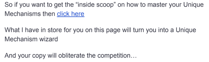 Just a side a note...the irony of this email is that the unique mechanism of the email that delivers the big promise is the “unique mechanism”. Copy is some really cool stuff…